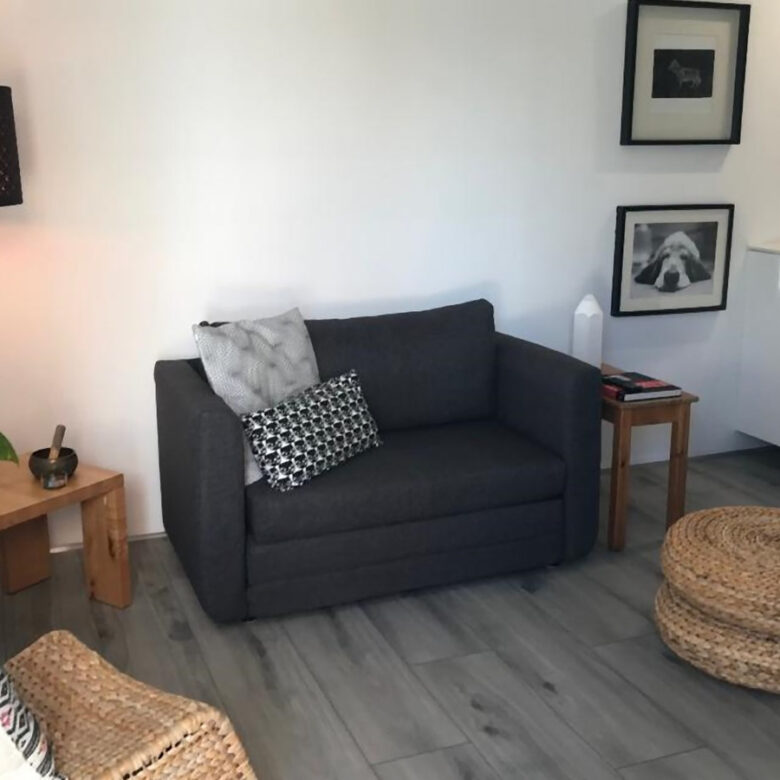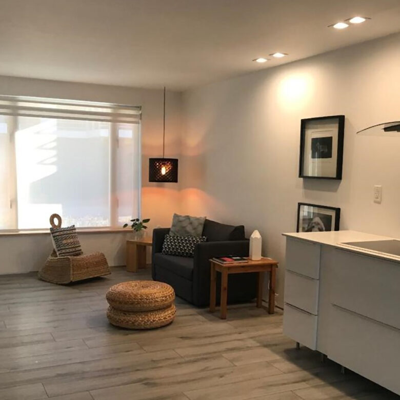 Con garaje, 1 alcoba con baño, patio y zona de ropas independiente ( incluye la lavadora).