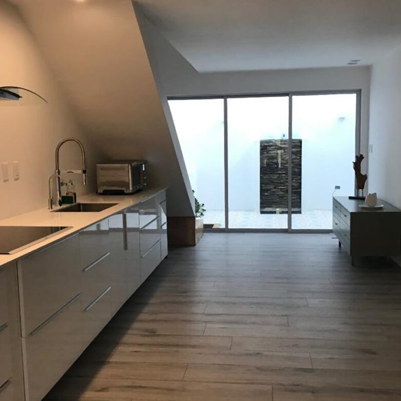 En el primer piso cuenta con salón comedor, cocina con muebles importados de Cook top Bosh, además con triturador de alimentos, filtro de agua y extractor.