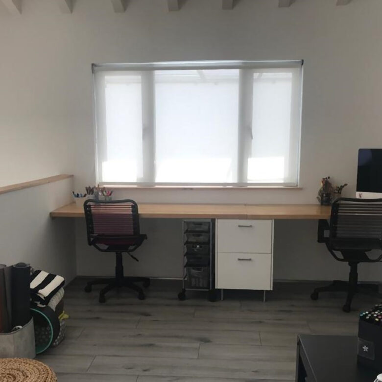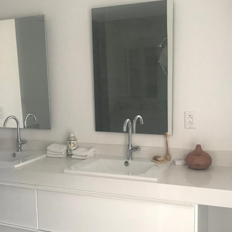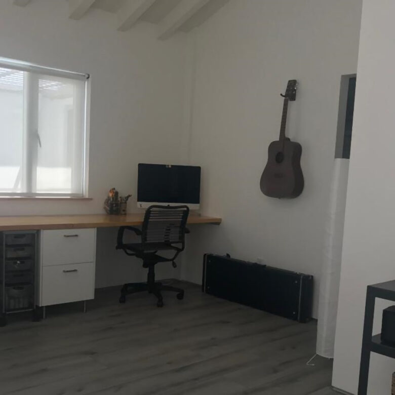 El segundo piso tiene una alcoba, con vestier y baño ( bañera) y alcoba principal con un baño, doble lavamanos y vestier de Container Store