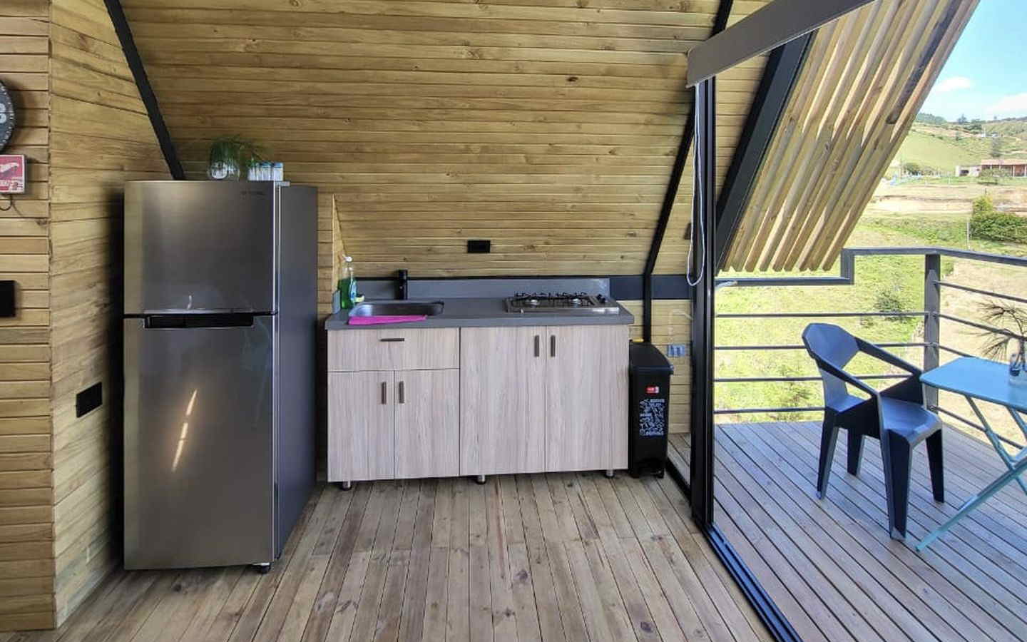 Cuenta con zona BBQ, 1 baño, salón abierto, 1 dormitorio, vía de fácil acceso.