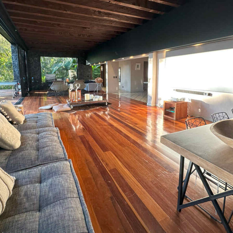 En el primer piso, un área de 243m2, con acceso y hall de llegada, salón con chimenea, cocina con despensa, comedor, estar de televisión, baño social, 1 alcoba de huéspedes con su baño y un deck de 99m2.