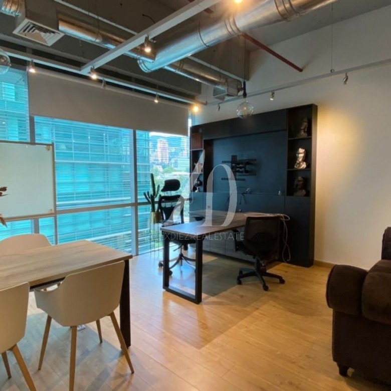 Oficina en medio de toda la acción financiera y comercial de Milla de Oro en El Poblado, con baño privad, parqueadero, amoblada y  lista para su uso, cuenta con aire acondicionado.